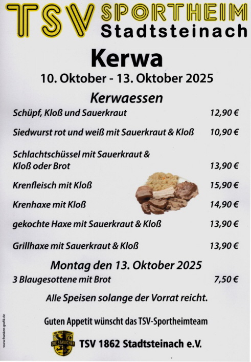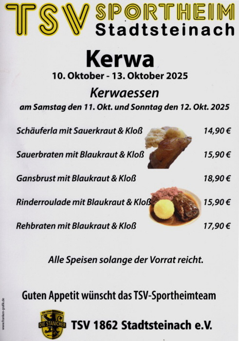 | © Copyright Gaststätte "Zum Steinachtal" | Letzte Änderung: 06.10.2025 |